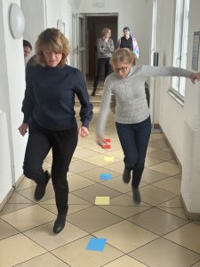 Mit viel Spaß hat uns Sonja Becker von der Regierung Niederbayern kurze Sportübungen vorgestellt, die kombiniert mit kleinen Denkaufgaben,